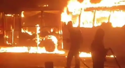 O CBMMA informou que cerca de 22 veículos (entre ônibus e micro-ônibus) pegaram fogo na garagem da empresa Moriá, que opera linhas do transporte escolar da cidade.